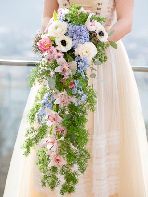 Sonja Neubert von Trauwerk, die das Shooting konzipiert hat, wollte zeigen, wie man aus einem aktuellen Trend ein modernes Hochzeitsthema schaffen kann, das zur Region passt: „Der Boho-Stil ist in aller Munde. Doch wie sieht er aus, wenn man ihn bayrisch inspiriert? Und das in den Trendfarben 2016 – Roséquarz und Serenity? Traditionsbewusst und naturverbunden heiraten – aber mit modernem Touch. Das war das Ziel“, erzählt die Hochzeitsplanerin aus München.