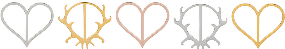 Die Dirndlspangerl sind in Edelstahl hochglanz poliert, rosévergoldet oder vergoldet erhältlich. Als Motive gibt es das süße Herz oder das trachtige Geweih.