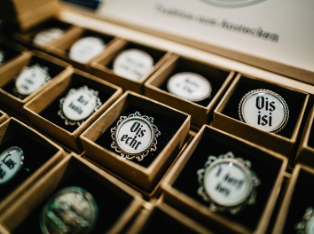Der Gaudiknopf transportiert mit charmantem Dialekt ein Stück alpines Lebensgefühl. Für jede Laune, Persönlichkeit und Anlass findet man den passenden Spruch. Qualität & Regionalität sind der Inhaberin ein großes Anliegen, darum werden die Anstecker in Zusammenarbeit mit regionalen Partnern und mit viel Liebe zum Detail von Hand gefertigt.