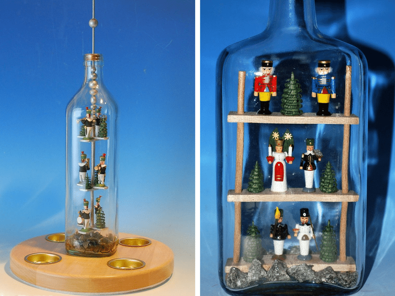 Die verschiedensten Gegenstände in durchsichtige Glasflaschen zu montieren, zu basteln – eben Geduld zu haben – kennen wir bereits bei den sogenannten Buddelschiffen. Schon vor Jahrhunderten vertrieb man sich die Zeit in den langen Wintermonaten mit dieser alten Tradition.