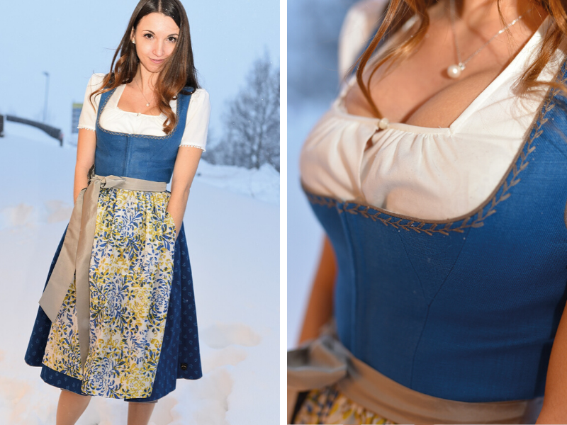 Das Oberteil aus 100% Leinen, der Rock aus 100% Baumwolle und die Schürze aus 100% Seide – solch ein Dirndl kann sich sehen lassen!