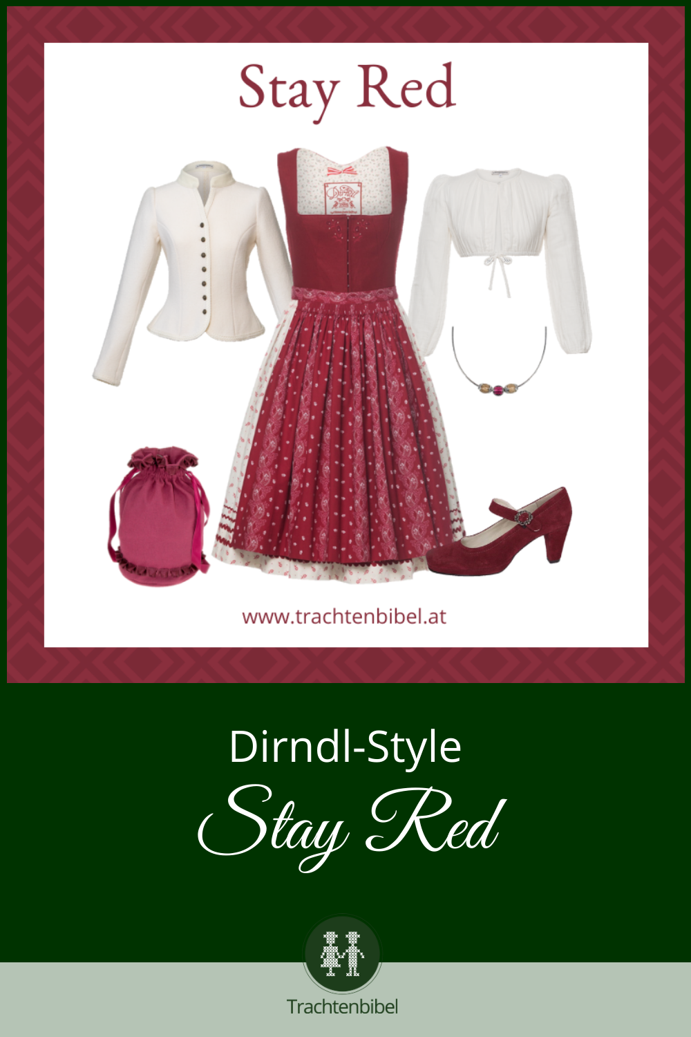 Die Basis für unseren aktuellen, farbstarken Dirndl-Style Stay Red ist ein Dirndl mit kirschrotem Leinenleib, der von einer wunderschönen Handstickerei geziert wird. Das Oberteil wird mit einer Hakenleiste geschlossen. Der Rock ist aus Baumwolle, hellgrundig mit rotem Vintageprint und ist handgezogen.