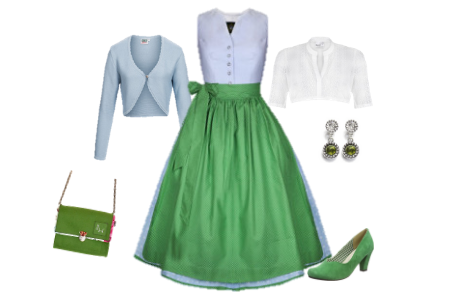 Dirndl Hammerschmid €259,95 / Dirndlbluse MarJo €49,95 / Bolero Country Line €69 / Pumps Hirschkogel* €65 / Tasche TaschenfürsLeben €75 / Ohrstecker almresi €12,90
