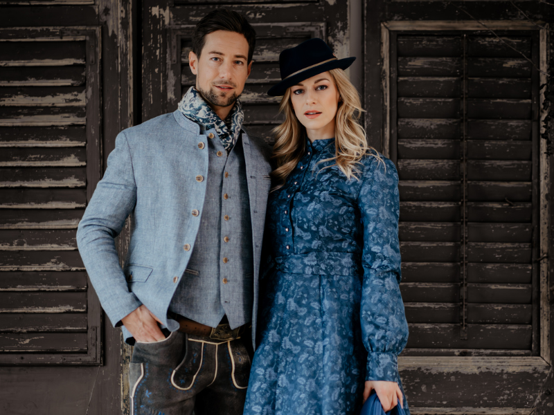 In der Tracht hat das Bayern-Himmelblau eine lange Tradition, dass es jetzt so modisch ist, lässt die Liebhaber klassischer Trachten jubeln. Schwingende Trachtenkleider, Westen oder Hemden, die Akzentfarbe setzt einen unübersehbaren Hingucker.