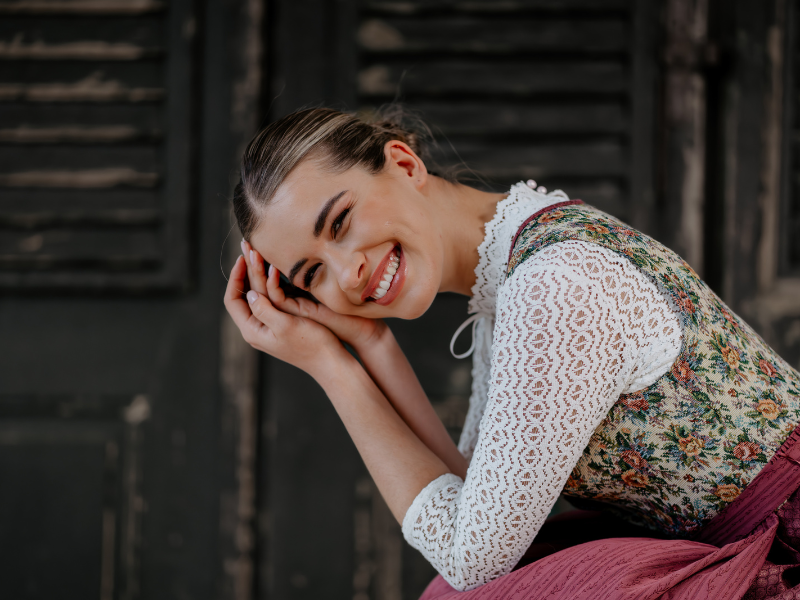 Eine Referenz an die Tradition – in vielen lokalen Trachtenkulturen ist stets die kostbarste Festtagstracht in Schwarz, wie zum Beispiel die Bregenzerwälder Juppe – und ein modernes Statement gleichermaßen. Diese Farbe verleiht Dirndlblusen, Miedern oder Rockteilen eine edle Note und ermöglicht vielseitige Kombinationsmöglichkeiten.