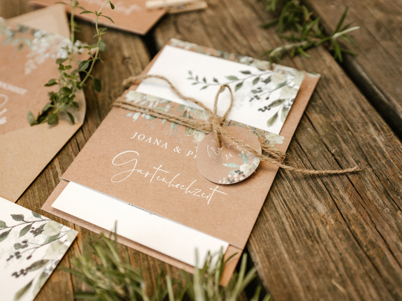 Schließlich überzeugte eine Kraftpapier-Variante mit dezenter weiß-grüner Verzierung im Blüten-Design, so dass die Produkte zum Begleiter durch die gesamte Foto-Story wurden.