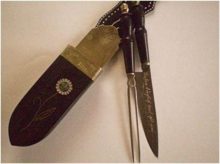 Ab dem 16. Jahrhundert wurden diese aufwendig gearbeitete Bestecke und andere Gebrauchsgegenstände wie Feuerschläger, Schlüssel und Drudenmesser als Statussymbol den reich verzierten Gürteln getragen.