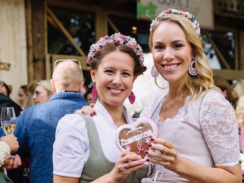 Trachtenikone Gexi Tostmann, natürlich in Tostmann und Sportalm-Inhaberin Ulli Ehrlich, in Sportalm zeigten, dass in der Trachtenbranche auf der Damenwiesn kein Konkurrenzdenken herrscht.