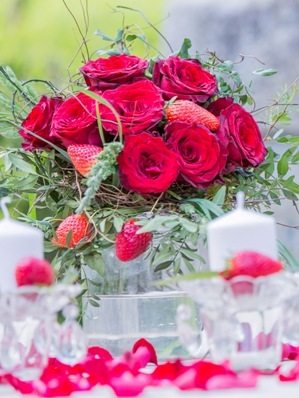 Traditionell und doch „anders“ präsentiert sich das Brautpaar und die gesamte Hochzeitsgesellschaft. In die Linie „klassisch modern“ fallen auch Schmuck und Ringe, die für das Ja-Wort ausgewählt wurden. Fürstlich elegant und wohlschmeckend waren die Gaumenfreuden des Hochzeitsmenüs. Modern, kreativ und im „karierten Stil“ präsentierten sich Papeterie und die süße Hochzeitstafel. Der sorgfältig arrangierte Blumenschmuck mit eleganten Rosen und verführerischen Erdbeeren spiegelt sich an der Hochzeitstafel, in der Kirche und im Brautstrauß wider.