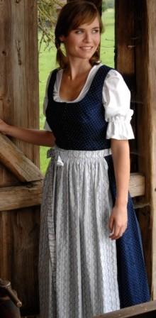 eim Kärntner Dirndl sind Leib und Rock aus einem dunkelblauen Baumwollstoff mit weißen Tupfen gefertigt. Das Oberteil hat keine Rückenteilung, aber eine Paspelierung. Dazu gehört eine weiße Schürze mit roten oder blauen Blumenranken. Zu festlichen Anlässen kann auch eine schwarze Seidenschürze dazu getragen werden.