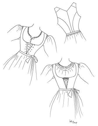 Diese Form des Schnürmieders mit Borte am Miederlatz erinnert an die in Salzburg allgemein üblichen Mode des ausgehenden 18. Jahrhunderts. Die Miederschnürung mit Haken oder Ösen wird dazu passend abgestimmt.