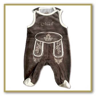 Die Produktpalette im Online-Shop von Mogo wird jedes Jahr erweitert. Strampler, Shirts, Hauben, Lätzchen, Bodys und natürlich die Babylederhose werden angeboten.
