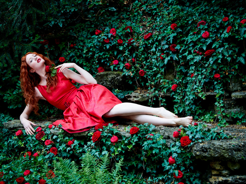 Dieses ganz besondere Stück im typischen Mothwurf-Rot wurde aus Waldviertler Seiden-Jacquard gefertigt und begeistert mit einem edlen Rosenmuster. Der breite Gürtel betont geschickt die Taille und ist mit handgenähten Rosen verziert. Als besondere Ergänzung liegt jedem Jubiläumskleid eine dazu passende Schminktasche bei.“