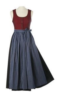 Der Ausschnitt und die Teilungsnähte sind schwarz passepoiliert und oft ist auch am Halsausschnitt eine schwarze Rüsche angebracht. Beliebt bei diesem Dirndl ist ebenfalls ein Kittlblech.