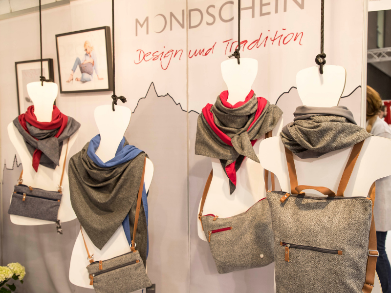 Taschen kommen aus ökologisch-bedrucktem Brennnessel-Stoff, die echten Blaudrucktaschen sowie Rucksäcke und Beutel mit Lederbesatz. Und auch Alternativen lassen grüßen, denn zu den gängigen Filz- und Lodentaschen mit glitzerndem Hirsch zieht sich ein Bogen zu etwas, was schon als sehr originell bezeichnet werden darf – geflochtene Taschen aus feinem Ata-Stroh, in neuen Formen und gefüttert, die sich mit einen Lederriemen ausgestattet, problemlos umhängen lassen.